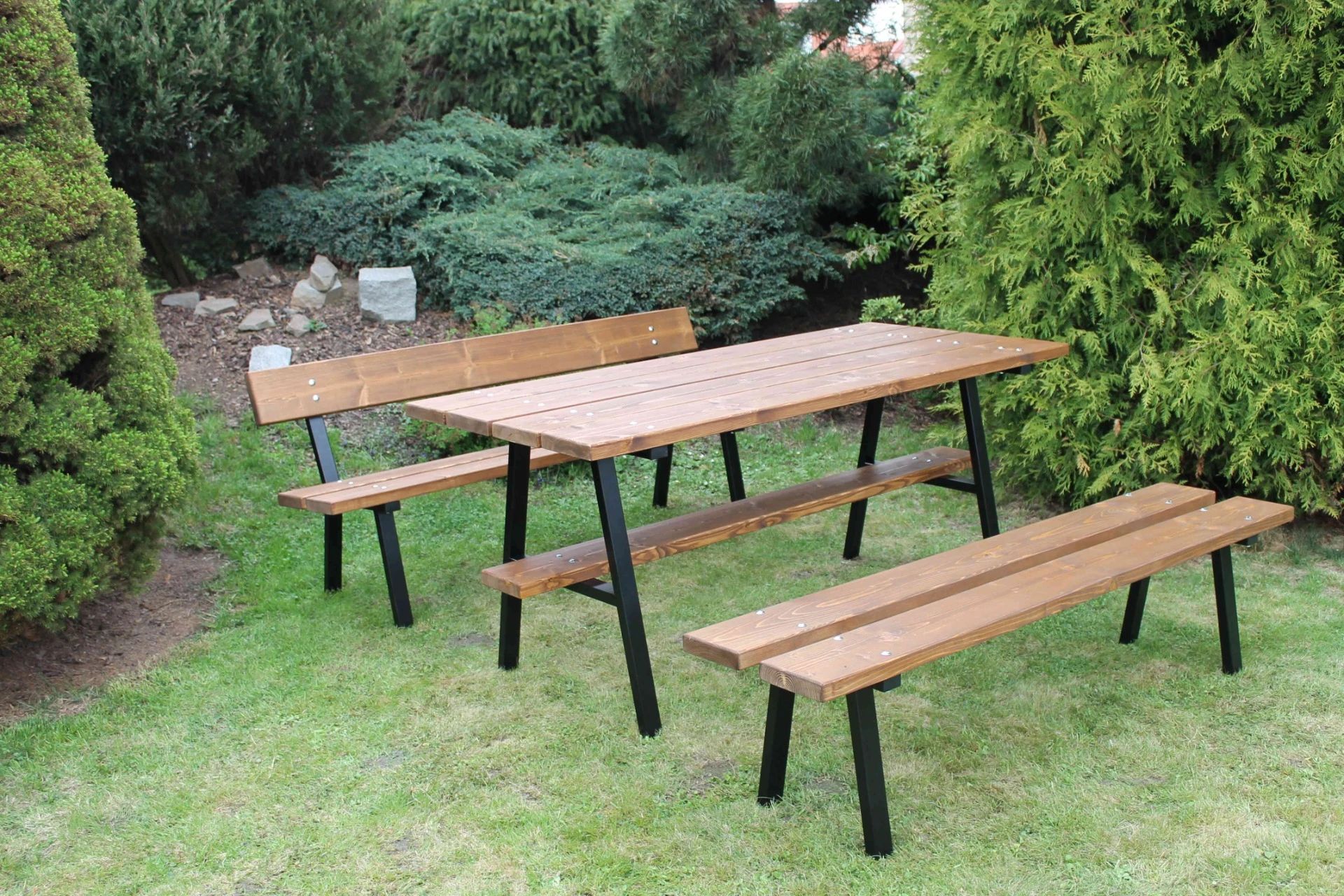 Kovový zahradní nábytek Pekárek vyniká svou bytelnou konstrukcí, ale zároveň zůstává lehce přemístitelný. Je ideální nejen pro soukromé zahrady a terasy, ale i pro městské prostory, školy, firmy nebo veřejné parky.
