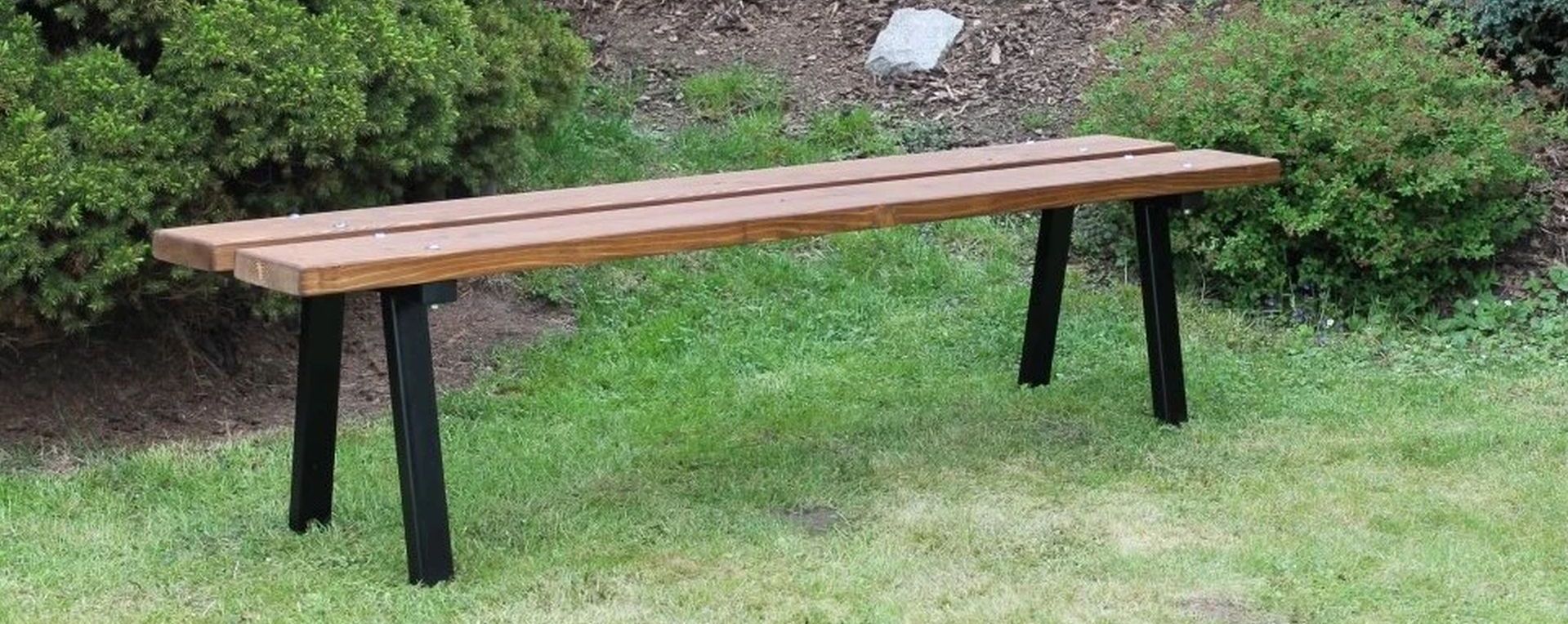 Stabilitu lavičky zaručuje kvalitní ocelová konstrukce s masivními dřevěnými fošnami. Tři silná prkna jsou pevně spojena pomocí 8 vratových šroubů s kovovými podnožemi, které zajišťují mimořádnou životnost celé lavičky. Pro vyšší bezpečnost je možné lavičku zabetonovat do země a ochránit ji tak před odcizením.